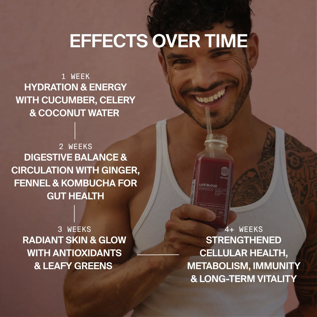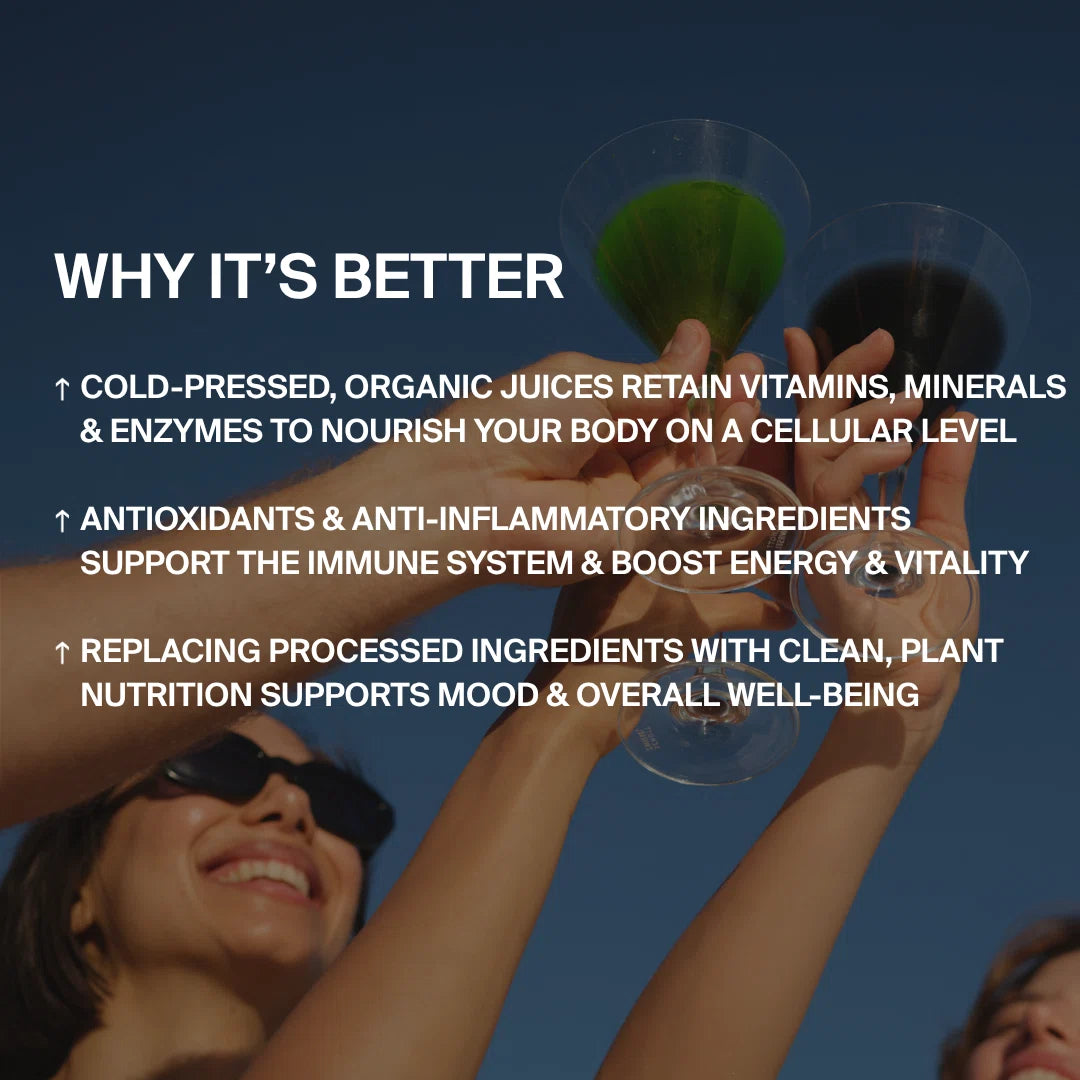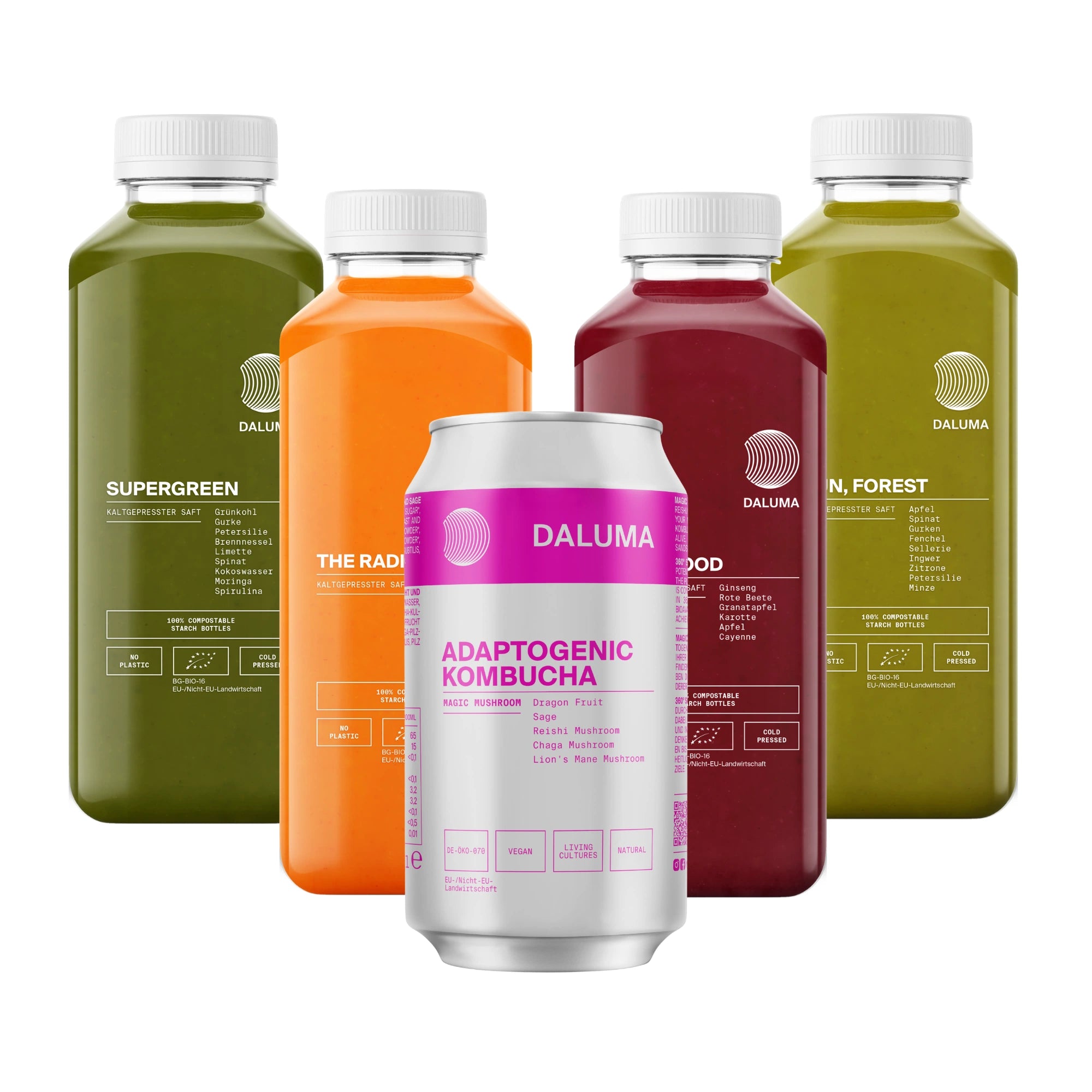 Reich an Vitaminen, Mineralstoffen und Enzymen, stärkt das Set dein Immunsystem und unterstützt die natürliche Regeneration. Aktive Kulturen und adaptogene Pflanzenstoffe fördern die Darmgesundheit und helfen, innere Balance und Wohlbefinden zu erhalten.