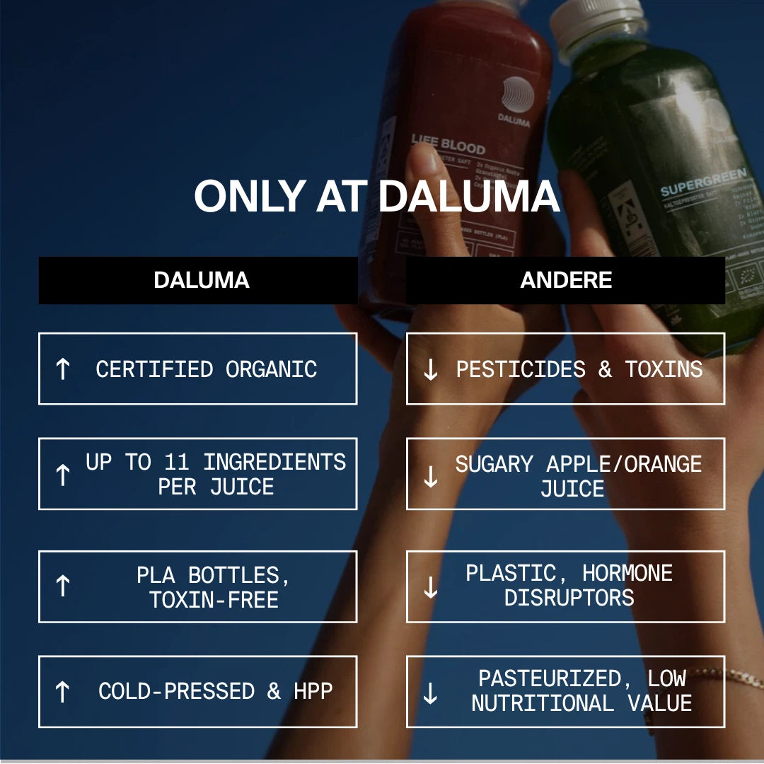 Durch das spezielle Kaltpressverfahren bleiben alle Inhaltsstoffe bestmöglich erhalten und somit gewährleisten wir, dass Du alle wichtigen Vitamine und Mineralien erhältst.