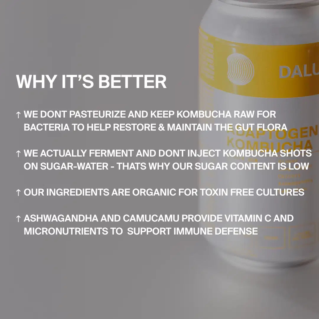 Roher & ADAPTOGENER KOMBUCHA MIT AKTIVEN KULTUREN FÜR EINE GESUNDE DARMFUNKTION